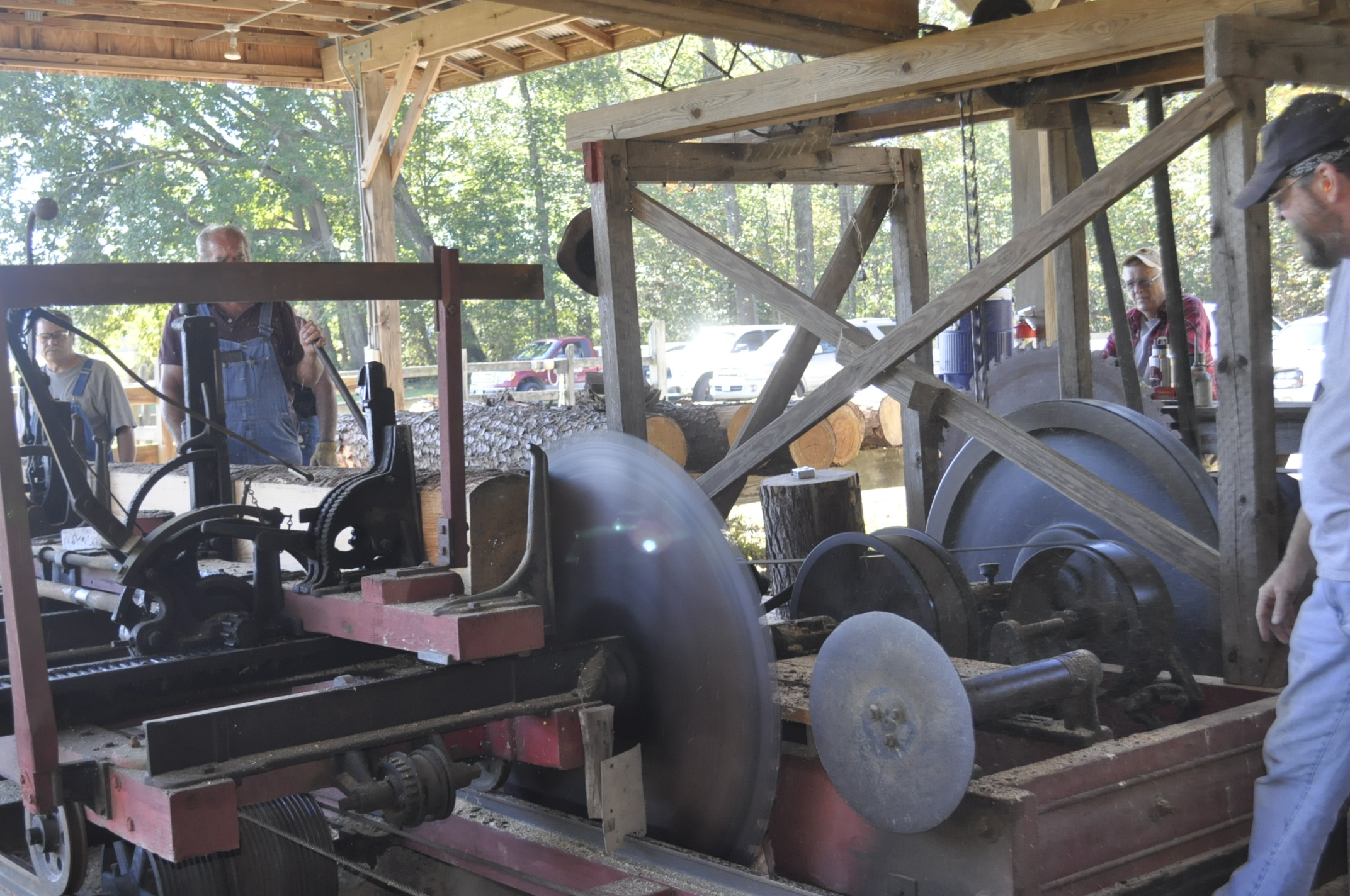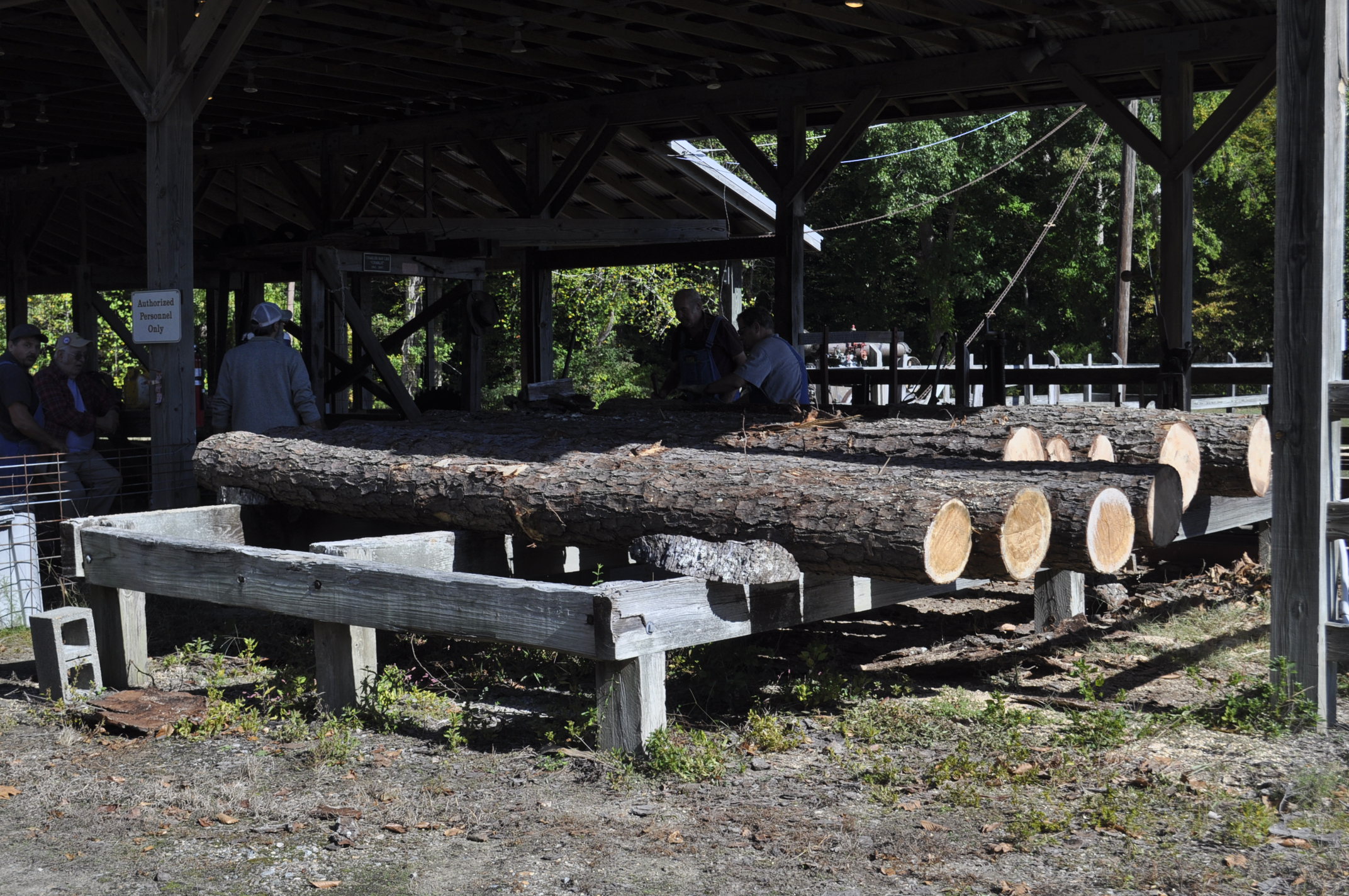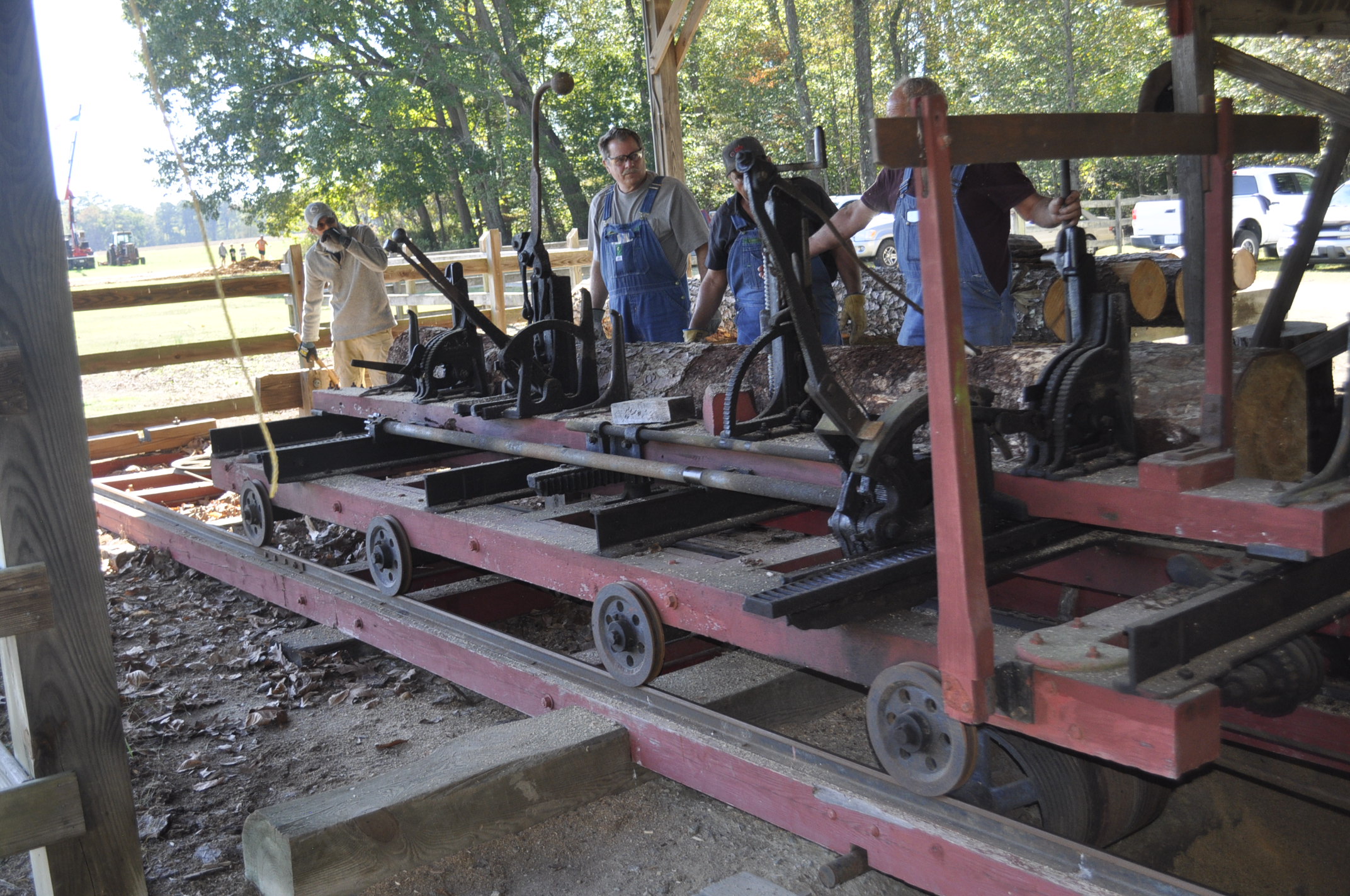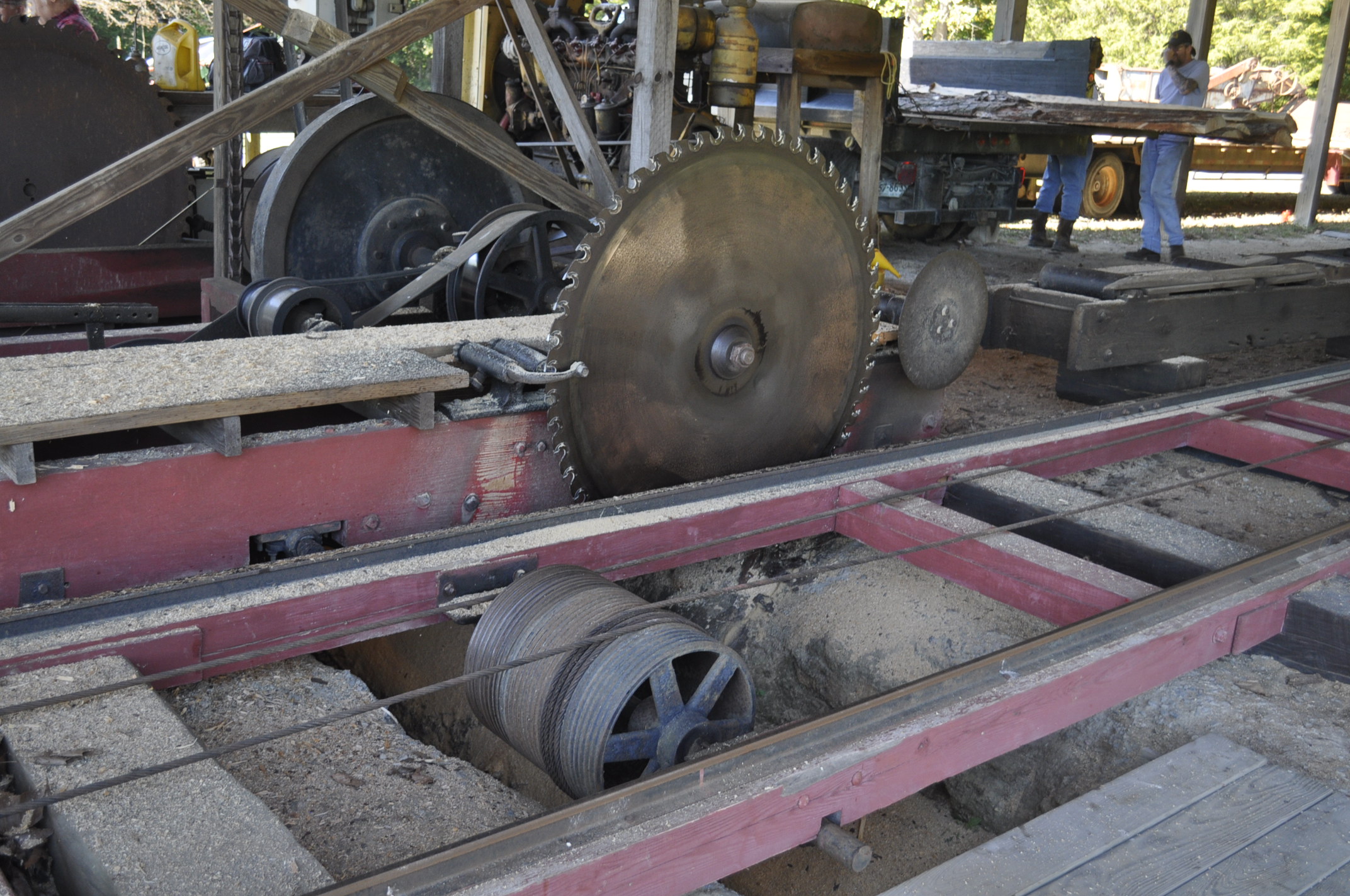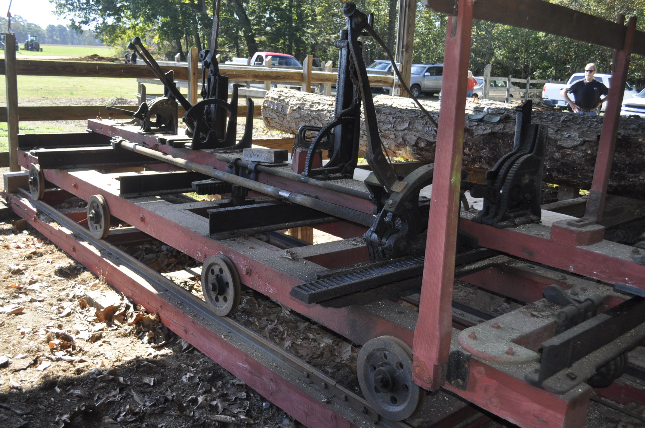 Chippokes Plantation State Park SawmillBack in the February TWWWG newsletter I wrote about the old sawmill located at Chippokes Plantation State Park located in Surry, VA. On October 15, 2022 they held their annual Harvest Days Festival and my wife and I drove up there to see the sawmill in action along with other attractions. As you will see in the photos below the sawmill did a very good job of cutting up the pine logs just like Paul Garrity and his portable saw mill. What really got my attention was the amount of labor involved in cutting up the logs on this old saw mill. Paul and his sawmill lift the log off the ground and do the positioning all with hydraulics. This sawmill uses man power to move the logs. Before the log hits the saw blade three men get beside the log and roll it onto the saw sled. They then lock and position the log in place with man power and manual clamps. In front of these three men is the sawyer who works the controls on the sled to get his desired cut. In speaking with the sawyer who is out of Virginia Beach they only do flat sawing. On the other side of the saw blade you have two men grabbing the boards as they come out of the saw blade. There is no blade guard on the saw blade and the one person grabbing the board gets awfully close to the big blade. Finally there is one more person behind these two men who takes the wooden slab off of the roller assembly and puts it on a wagon. That makes seven men required to cut up a log. They also had one more person standing by the power plant monitoring its operation and the PTO (Power Take Off) belt system. Left - Logs On Platform Ready To Be Sawn Right - Sawmill Sled For The Logs Left - Power Plant Right - Pulley And Belt System For Sled, Blade & Saw Dust Removal Left - Sawyer In Foreground, Hydraulic Men In Back Right - Pulley & Blade, Pulls The Log Into The Blade Left - Log Encountering The Saw Blade Right - Log Exiting The Saw Blade Left - Note How Close He Is To The Blade Right - It Takes Three Men To Handle The Cutoff Gary |