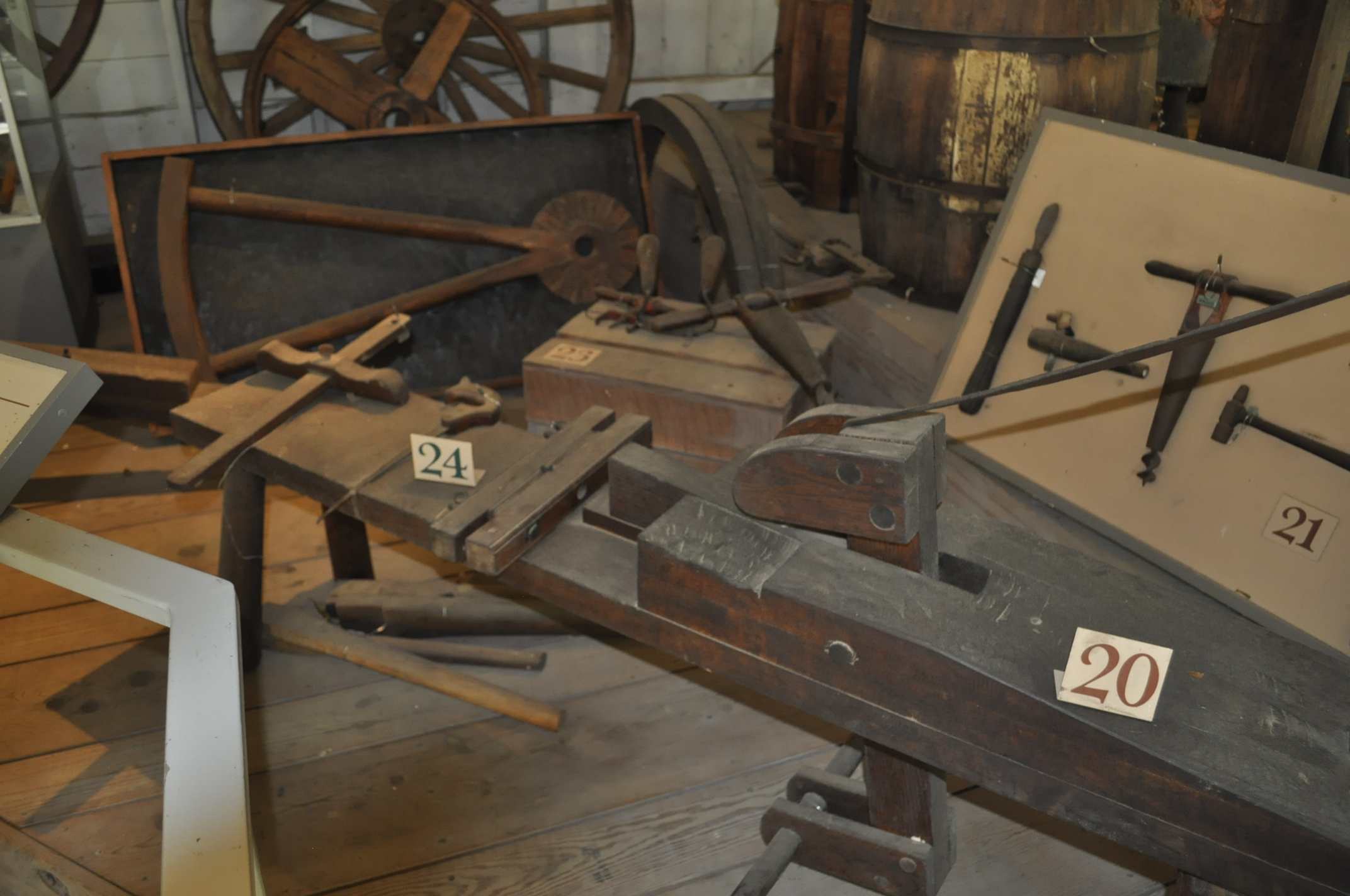 Woodworking In Early TimesWhile enjoying the beautiful day at Chippokes Plantation State Park I stumbled across an exhibit called Crafts On The Farm which really relates to our guild members who do not work with power tools but enjoy their hand tools. The craftsman was called a Wheelwright. The Wheelwright build and repaired wooden wheels found on early carriages, wagons, carts and other vehicles. Because the hubs, spokes and rims were made of wood, the Wheelwright used many carpentry skills. He used a Wheelwright saw to cut spokes or rim pieces and a shaving horse as a combination work bench and vice. The Wheelwright straddled it like a horse (Hence the name) and worked the clamp with his feet. This left booth hands free to use spoke shaves and other draw knives. At first all parts of the wheel were made from hardwoods like Oak, Ash or Hickory. By early 19th century, however, hubs were metal lined and rims iron-strapped for greater strength. After the civil war, iron wheels were made in factories and the Wheelwright trade gradually disappeared. In the early 20th century, wheels were rimmed with rubber to produce a smoother ride. The modern pneumatic or air-filled rubber tire was developed in the 1930's. Below are pictures of their shaving horse work bench and various tools which still look very familiar to us in late 2022. Left - Item 20 Is The Shaving Horse Right - Tools Of The Trade. Look Familiar? Gary |