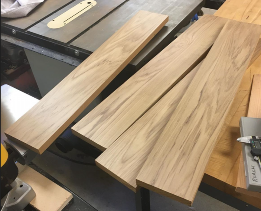 Benchtop Talk: Challenges For WoodworkersTWWWG members met for an informal benchtop discussion on April 10, 2023. The only stated objective for the meeting was an opportunity for members to present work they’ve performed or challenges they are experiencing. Not all discussions were captured, but below is a summary of some of the bigger topics. Gary Stephens showed a thick block that had been glued up from contrasting colors of scrap wood, which he intended to cut into a gradual curve as part of a knife block. He asked for suggestions for cutting such a thick piece of wood with a gradual curve, which was too thick to cut in his bandsaw. Consensus was that it would be easiest to do on a bandsaw that has an extension block for resawing. Alternatively, it could have been cut as two pieces before gluing up. The cut was performed later in the gathering on the saw in the classroom.