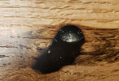 Project 17 for the year is a natural edge spalted oak charcuterie board. This one has a name: Wormwood. The 16 x 8 x 1 board is made from scrap left over from the milling of a large branch. It is pocked with boring holes from insects, each reamed and cleaned before being filled with clear resin/epoxy and then soaked in mineral oil and polished with beeswax/oil 'board butter. This would be an eye-catching addition to the kitchen of anyone who appreciates the endless beauty of wood. Project 18. This is a 12 x 5 x 3/4" cheese slicer made from a twisted scrap of quarter-sawn red oak. It had a number of large intrusions that I filled with resin/epoxy and polished to a transparent view.